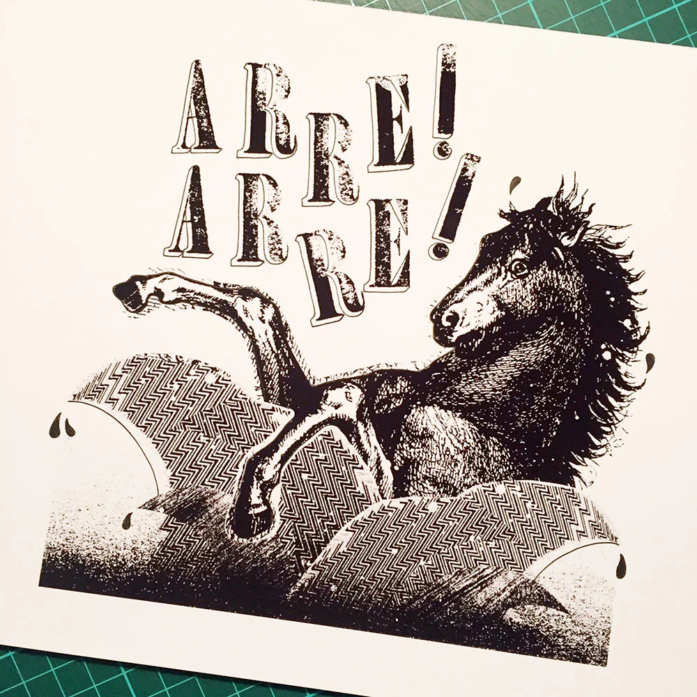 Förra helgen åkte jag och en av mina bästa vänner över till Köpenhamn för lite inspirations-boost på det årliga eventet We love graphic design. Vi fick med oss en och annan fin insikt (+ en gullig poster). Bland annat: ge kärlek till dina sidoprojekt! Ibland är det bra att flytta fokus och behöver inte innebära procastination. Dvs att du skjuter upp det arbete du egentligen ska göra, eller visst kan det vara så men skit i det! Det ena kan inspirera och ge kraft åt det andra. Sidoprojekt kan knoppa av sig i nya projekt, samarbeten, insikter och upplevelser. Att arbeta som frilansande formgivare och musiker innebär ett konstant flöde av sidoprojekt. På gott och ont. Stort som smått. Men en klar favorit är när jag får formge musik. Skivomslag, konsertaffischer, back-drops etc eller som här: band-tishor! Den här gjorde jag till mitt band Arre! Arre! inför sommarens spelningar.
