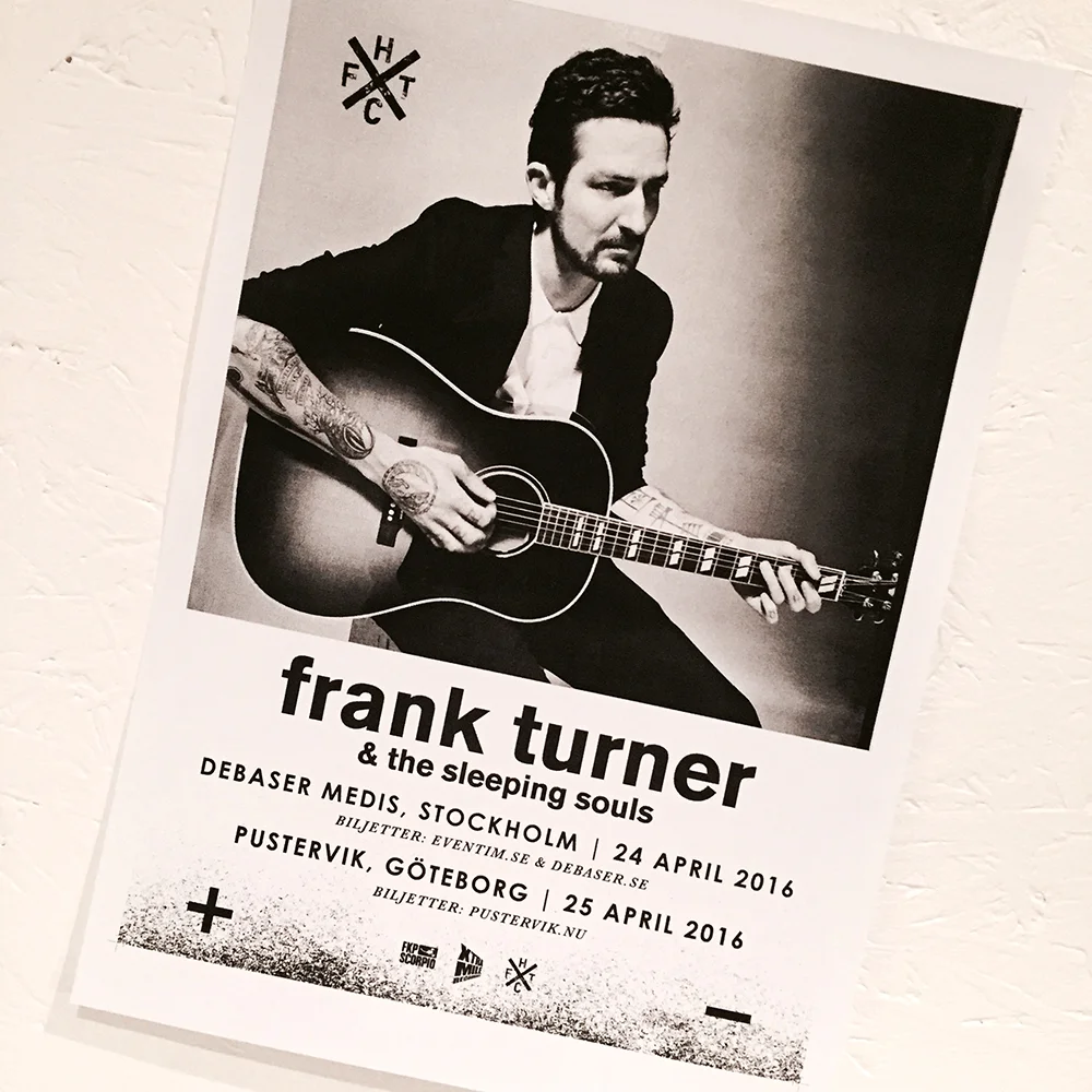 P3guld var mäktigt! Pompa, konfetti och rysskyla! Nu är det back to work. Jag formger affischer för bokningsbolaget tillika konsertarrangörerna FKP Scorpio. Senaste i ordningen är Frank Turner. Här ser ni en skiss på nämnda punkare.